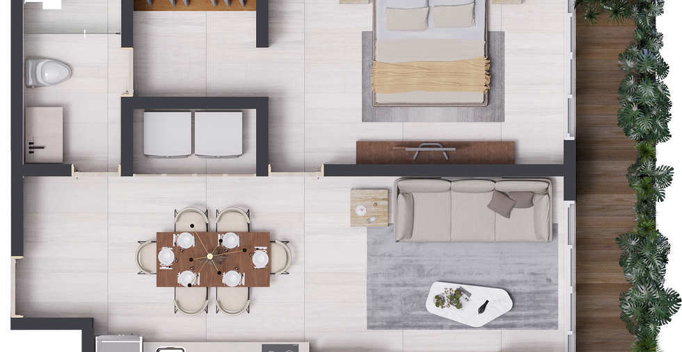 Find your place in a multicultural town, a setting full of energy and life. Distrito Playa has the perfect balance between the requirements of a modern lifestyle and the calmness of a beach home.