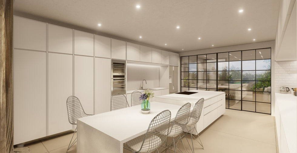 • Floor to ceiling Sliding Glass Doors separating the kitchen from the main living areas provides privacy
