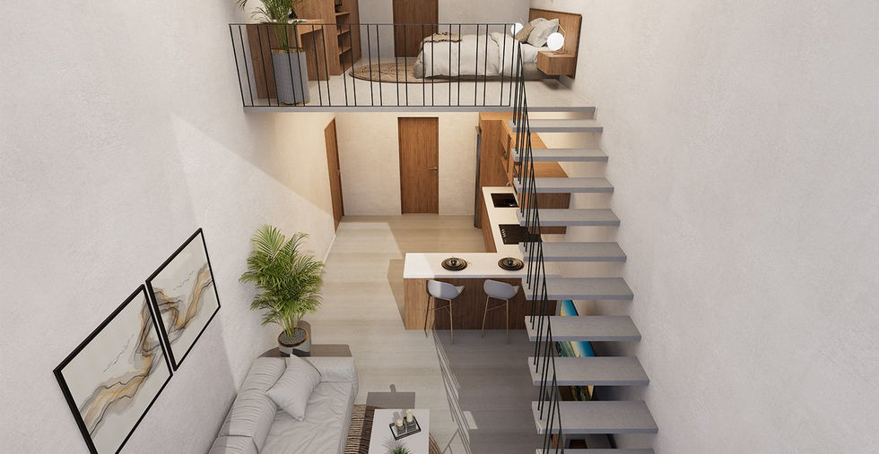 Zen Park Playa del Carmen is a new real estate development with studios, apartments, and lofts for sale in Playa del Carmen. Zen Park will include the following amenities: a pool, rooftop terrace, sauna, laundry facilities, concierge, elevator, storage, parking, controlled access, and 24/7 security. A total of 25 luxury apartments in total with 3 designs, Studio, 1 Bedroom and 1 Bedroom Loft with split level.