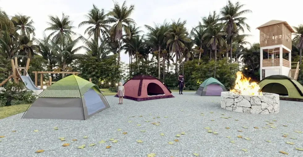 Stage I – Lucca: Picnic area, camping, fire pit, tree house, contemplative trail, botanical garden, pet park. Stage II – Marina: Yoga area, water garden, reading area, multifunctional terrace, temazcal. Stage III – Rossa: Soccer field, terrace, bar/BBQ, children’s playground. Stage IV – Nubia: Paddle tennis court, outdoor gym, bar/BBQ, ping pong, multifunctional terrace.